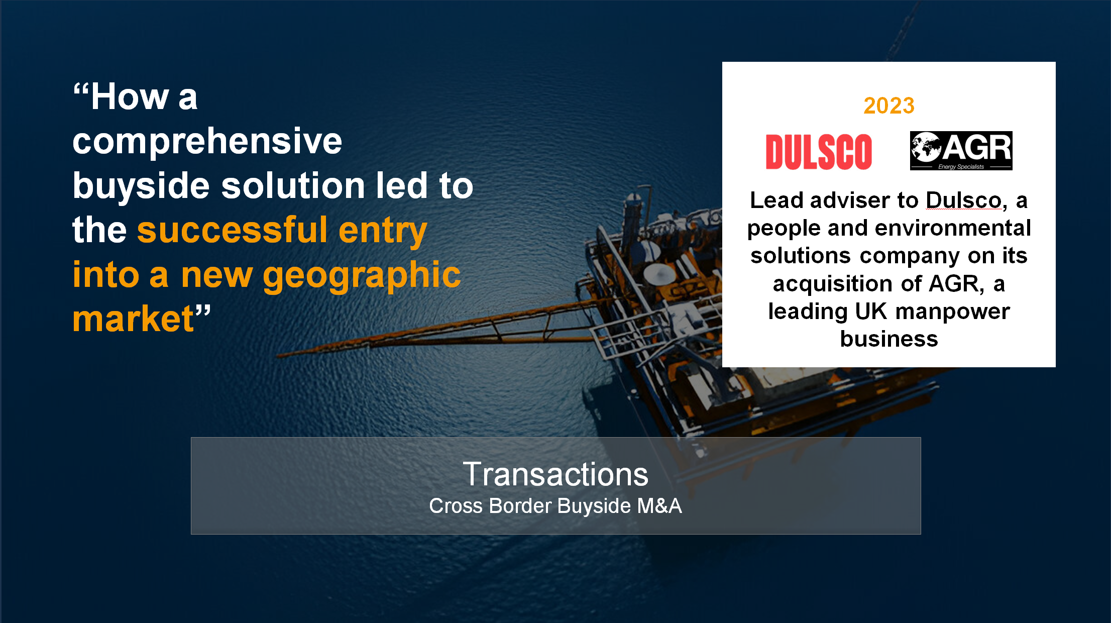 We have successfully executed a wide-range of transactions for private equity, family offices and global corporates, both regionally and internationally