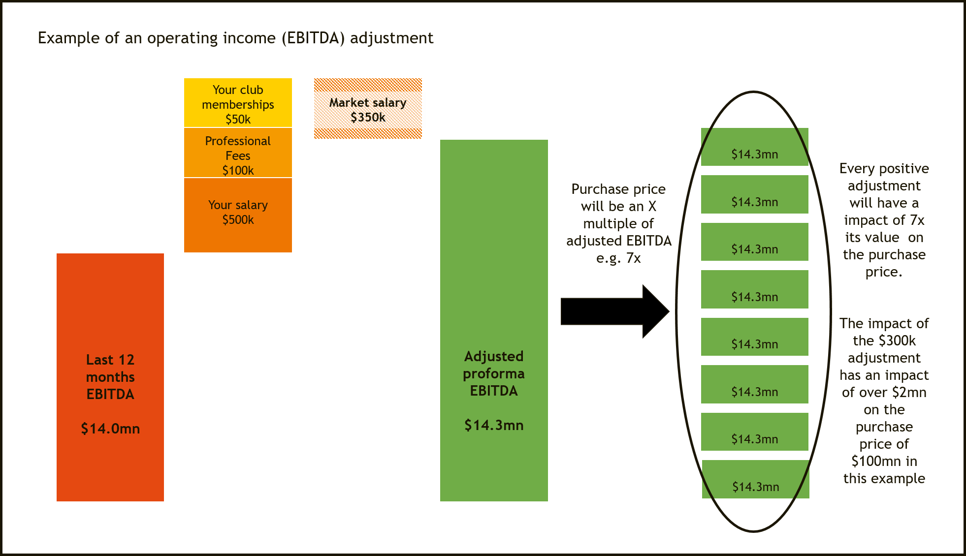 Every upward or downward adjustment to the “Adjusted EBITDA” will have a multiplier effect on the value of the business.